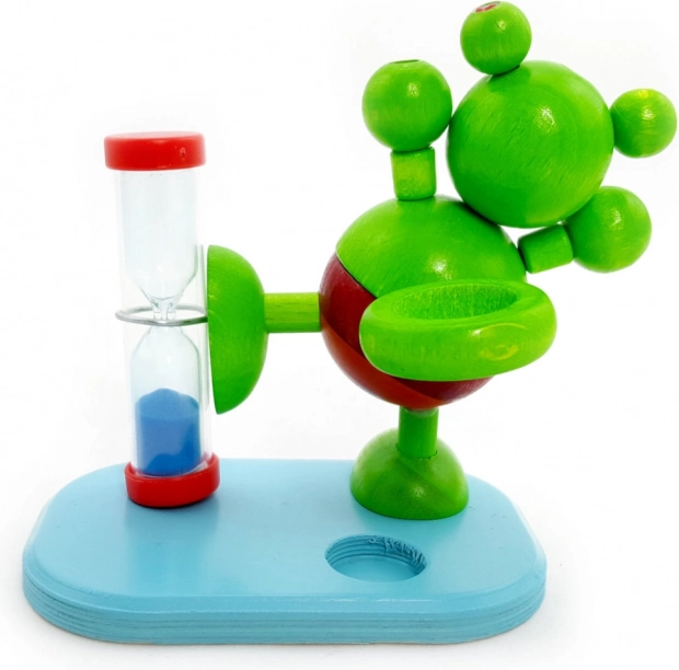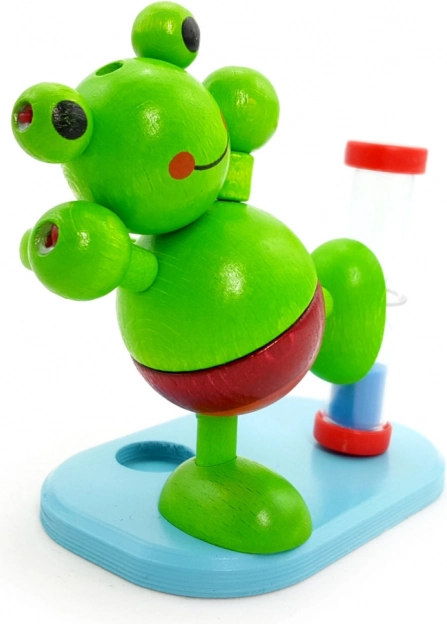Houten zandloper Kikker voor tandenpoetsen met tandenborstelhouder