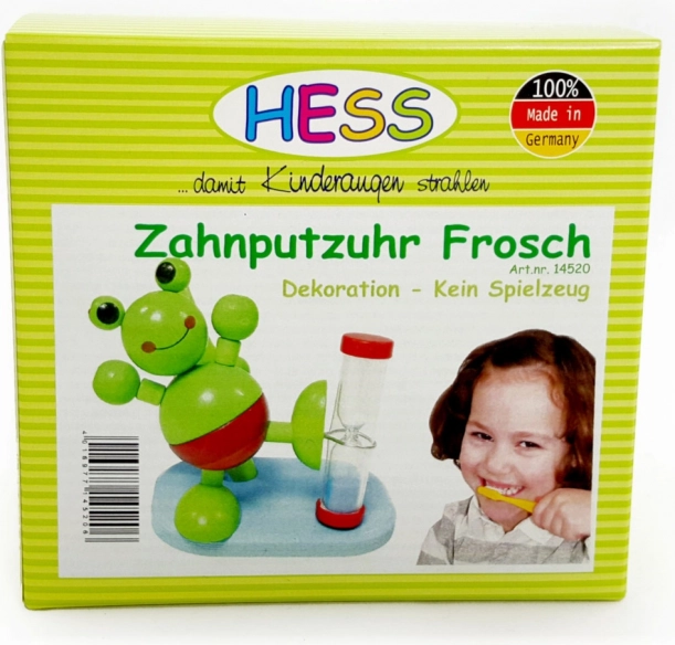 Maak de dagelijkse hygiëne voor kinderen leuker met deze speelse houten zandloper in de vorm van een kikker. Ideaal om 2 minuten tandenpoetsen te meten, met een praktische houder voor de tandenborstel achter het figuurtje. Hoogwaardige afwerking van natuurlijk, onbehandeld hout en een aantrekkelijk ontwerp dat motiveert tot regelmatig poetsen.