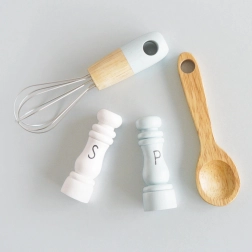 - Garde, houten lepel, zoutvaatje, peperstrooier