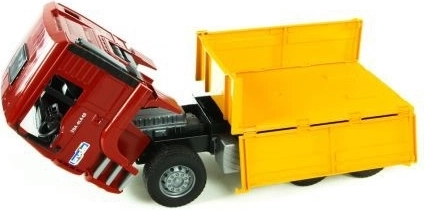 De MAN-vrachtwagen is uitgerust met een kiepbak die gemakkelijk laden en lossen van materiaal mogelijk maakt.