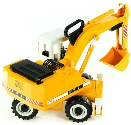 De Liebherr-graafmachine heeft een cabine die 360° draait en een volledig functionele graafarm, voor een realistische speelervaring.