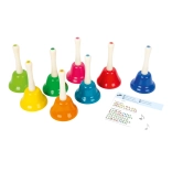 Deze achtdelige set klokken is ideaal voor jonge muzikanten, elke klok stemt een andere noot en ze zijn onderscheiden door levendige kleuren die het muzikale gehoor en de coördinatie van kinderen ontwikkelen.