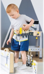 De kinder gereedschapsriem Miniwob is perfect aanpasbaar en zorgt voor veilige bevestiging dankzij de klikgesp. Deze speelse riem bevat: