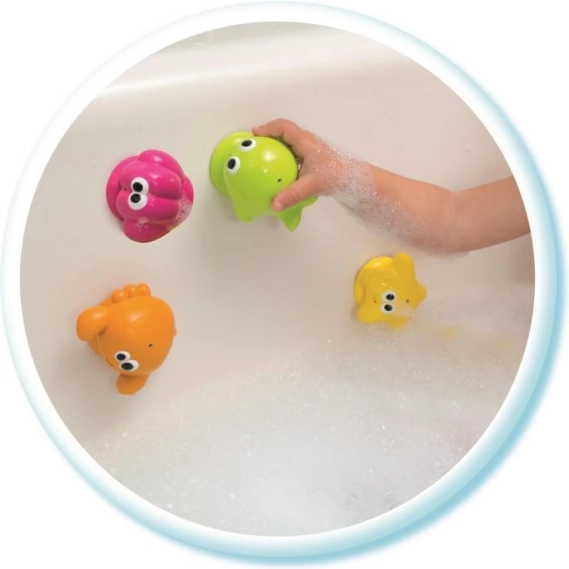 De diertjes hebben vrolijke kleuren en trekken de aandacht van kinderen in bad, terwijl ze hun verbeelding stimuleren.