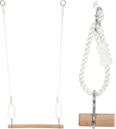 Dankzij de slijtvaste synthetische touwen met touwacht stel je moeiteloos de optimale hoogte voor elk kind in. Twee sets touwen maken het mogelijk om twee componenten tegelijk op te hangen en te gebruiken. Het eenvoudige ophangsysteem en de robuuste combinatie van hout, metaal en hoogwaardige kunststoffen zorgen voor veilig en stabiel gebruik.