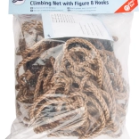 Het klimnet is uitgerust met robuuste plastic klemmen en metalen oogjes die eenvoudig en stevig bevestigen garanderen.