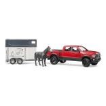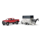 Elk liefhebber van terreinwagens en paarden zal genieten van dit hoogwaardige plastic model van Bruder. De set bevat een terreinwagen RAM, een paardentrailer en een paardenfiguur, ontworpen met oog voor realisme.