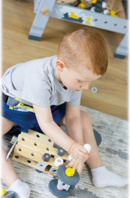 Kinderen oefenen hun fijne motoriek, oog-handcoördinatie en ruimtelijke verbeelding door latten, platen, wielen en blokken met elkaar te verbinden tot eigen creaties.