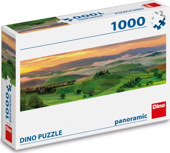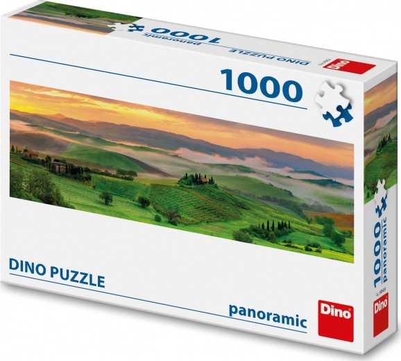 Geniet van ontspanning met het leggen van panoramische puzzels met het motief van een mistige zonsondergang boven groene heuvels. Kwalitatieve Tsjechische productie van DINO, nauwkeurige uitsnijdingen en 1000 stukjes voor een aangename uitdaging. Duurzaam gezondheidsveilig karton, panoramisch formaat en een ideaal beeld om na voltooiing in te lijsten.