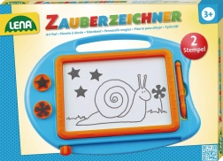 Het magnetische tekenbord LENA is een geweldig speelgoed voor kleine kunstenaars. Kinderen kunnen steeds weer schrijven, tekenen en stempelen – zonder rommel en zonder papier. De meegeleverde pen is met een koordje stevig bevestigd, zodat hij niet kwijtraakt, en met de schuifregelaar wis je de afbeelding snel.
