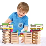 Met dit bouwpakket zijn er geen grenzen aan de kinderfantasie! Het houten bouwpakket stad Bino bestaat uit in totaal 150 stukken, die de bouw van diverse structuren mogelijk maken en logisch denken bevorderen door middel van een uitgebreid ontwerp en kleurrijke contrasten.