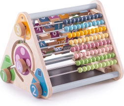 Ontdek een leuke en veilige educatieve speelgoed voor kinderen vanaf 3 jaar – een houten actieve driehoek van 100% FSC-hout zonder losse onderdelen. Biedt 5 speelkanten die de fijne motoriek, concentratie en eerste vaardigheden ontwikkelen: van een telraam en draaiblokken met alfabet en dieren tot een krijtbord. Geschilderd met niet-giftige verven en voldoet aan Europese veiligheidsnormen.