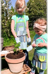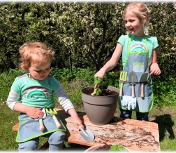 De set is ontworpen voor kinderen vanaf 3 jaar en is niet alleen perfect voor de tuin, maar ook als keukenschort of bescherming bij schilderen en knutselen. Alles is uitgevoerd in moderne kleuren die kinderen leuk vinden en bovendien makkelijk af te nemen zijn.