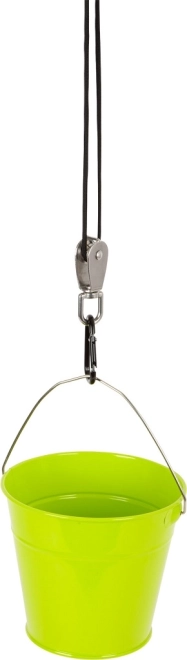 Deze robuuste set combineert een duurzame metalen emmer, een sterk 10 m touw en een dubbele katrol met karabiners voor eenvoudig ophangen. Kinderen leren op speelse wijze hoe het mechanisch voordeel werkt en hijsen met minimale inspanning kleine voorwerpen omhoog.