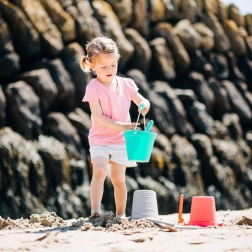 Het compacte design maakt het een handige reisgenoot – past in koffer, rugzak of kinderwagen. Kinderen kunnen er water en zand mee dragen, steentjes verzamelen of helpen bij het wassen van de auto. Combineer met andere accessoires uit ons assortiment voor een mooi bij elkaar passende set.