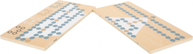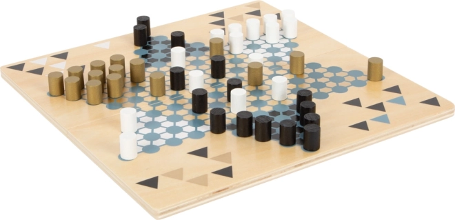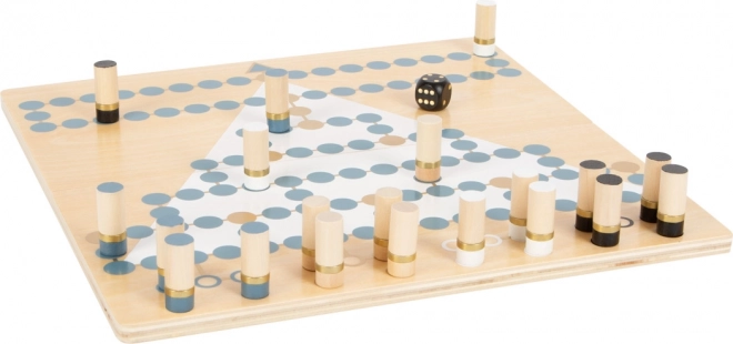 Ontdek de dubbelzijdige houten small foot Gold Edition die de klassiekers Halma en Barricade (Malefiz) combineert in een elegant design met gouden details, rookkleurig blauw, zwart, wit en naturel hout. De tweedelige, magnetisch gekoppelde speelbordhelften zorgen voor stabiliteit en eenvoudig opbergen in de stevige doos. Een geweldige keuze voor gezinsplezier, en ter bevordering van strategisch denken en concentratie.