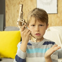 De revolver is gemaakt van hoogwaardig hout en zijn onderdelen zijn nauwkeurig uitgesneden, wat zorgt voor perfecte verbindingen tijdens de montage.