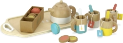 Tijd voor thee! Dit prachtige houten theeservies in zachte tinten maakt elke kleine gastheer of gastvrouw blij. Het bevat alles voor een fantasievolle theepartij – kopjes, theepot, theezakjes, lepeltjes en zoete lekkernijen. Het spel stimuleert communicatieve vaardigheden, fijne motoriek en sociale interactie. De hoogwaardige houten afwerking en veilige coatings zorgen voor duurzaamheid en een lange levensduur.