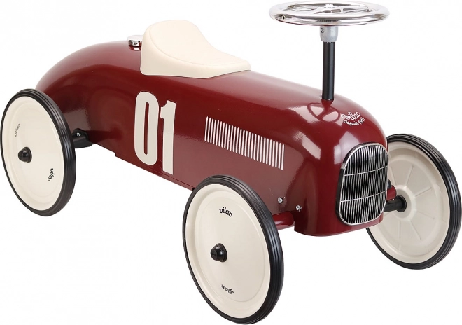 Ontdek de charme van klassieke racewagens met deze loopauto in metallic bordeaux, die meteen in het oog springt. De robuuste metalen body, het stabiele onderstel en de zorgvuldige afwerking maken dit loopvoertuig tot de ideale keuze voor de eerste rijervaringen van kinderen.