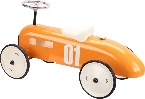 Een stijlvolle vintage race-achtige loopauto voor kinderen zal kleine bestuurders vanaf 18 maanden blij maken. De volledig metalen constructie, stille rubberen wielen, preciese besturing met stuur en een draagvermogen van 20 kg. De oranje metallic kleur en witte zitting geven het spel zowel binnen als buiten extra flair.