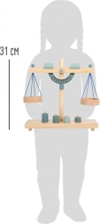 Bij het helpen van “klanten” leren kinderen communiceren, samenwerken en eerlijk ruilen. Dankzij het hoogwaardige hout met natuurlijke uitstraling en aangename grijsblauwe tinten is de weegschaal niet alleen duurzaam, maar ook esthetisch aantrekkelijk en veilig voor kinderhanden.