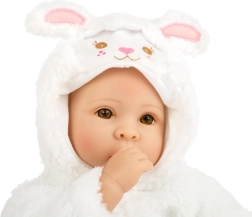 De set bevat een zachte pluchen overall, een knuffelige deken en een speen – allemaal in zachte kleuren voor een rustgevend effect. De pop is geweldig voor de ontwikkeling van fijne motoriek, empathie en rollenspel bij kinderen vanaf 2 jaar.