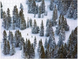 Ontdek de tijdloze luchtfoto’s van GRAY MALIN in de vorm van een premium dubbelzijdige puzzel. De ene zijde neemt je mee naar een serene winterse scène met besneeuwde bomen, de andere bruist van de dynamiek van kleurrijke skiërs op felwitte sneeuw. Elk stukje past precies, zodat het leggen soepel en bevredigend is.