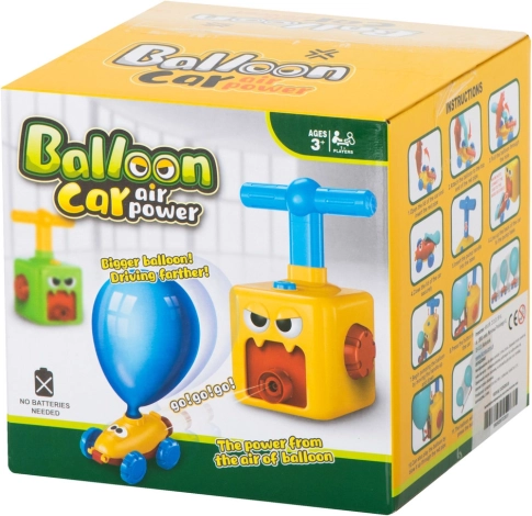 Plaats de ballon, pomp een paar keer en druk op de knop – het autootje schiet vooruit door de kracht van samengeperste lucht. Plezier dat zowel je portemonnee als het milieu spaart.