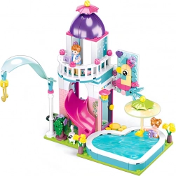 Ontdek de magie van de bouwset Sluban huisje met glijbaan naar het zwembad met 230 onderdelen en twee figuurtjes, ontworpen voor een gemiddeld moeilijkheidsniveau. De figuurtjes zijn innovatief met beweegbare delen en de hele set is gemaakt van hoogwaardig en veilig ABS-kunststof.