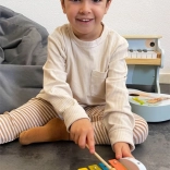 Deze hoogwaardige houten xylofoon is ideaal als speelse introductie in de wereld van muziek en ritme. De kleurrijke latjes helpen kinderen tonen intuïtief te onderscheiden en hun eerste liedjes te componeren, terwijl de stevige stokjes van massief hout voor comfortabele en precieze aanslagen zorgen.