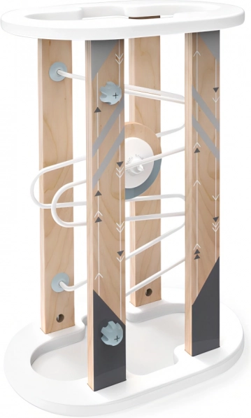 Draai de baan om zoals een zandloper en beleef eindeloos rijplezier! Laat kinderen de fascinerende werking van magnetisme ontdekken, die voorkomt dat de onrustige schijf eruit valt! De constructie van het speelgoed maakt gebruik van metalen en kunststof verbindingsstukken, waarmee de baan indien nodig eenvoudig kan worden gemonteerd, gedemonteerd en opgeborgen. Dankzij de robuuste basiselementen van duurzaam multiplex is het speelgoed stevig, stabiel en bestand tegen slijtage. Met zijn Scandinavische en natuurlijke tinten vult het de kinderkamer stijlvol aan. Geleverd met een gedetailleerde montagehandleiding. Belangrijkste kenmerken: baan met schijf, eenvoudig te monteren en te demonteren, robuuste en duurzame houten uitvoering