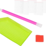 De set bevat alles wat je nodig hebt om een stralend kunstwerk te maken: afbeelding, kleurrijke steentjes, applicator, droog lijm en een dienblad.