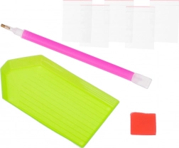 De set bevat een bedrukt canvas met kleeflaag, gekleurde steentjes in dertig tinten en hoogwaardige hulpmiddelen voor de applicatie. Dankzij het eenvoudige systeem met lettermarkeringen – elk canvasgedeelte komt overeen met een specifieke kleur steentjes – is het maken van de mozaïek intuïtief en probleemloos.