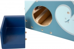 Verander elke kamer of tuin in een mini-golfbaan! De houten minigolf met haaienbek biedt kinderen actieve fun en training van de grove motoriek, oog-handcoördinatie en geduld. Laat het balletje over de blauwe helling als over een golf naar de open bek rollen – bij een treffer sluit de haai zijn bek en vier jij je score.