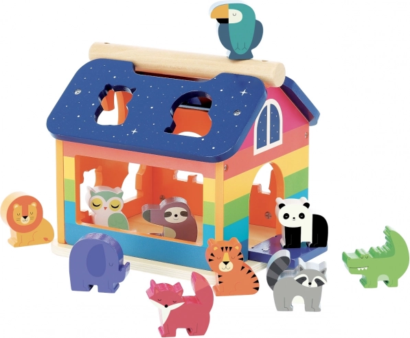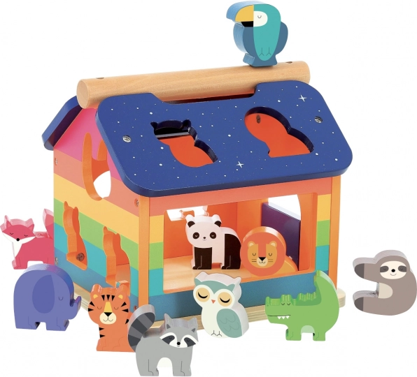 De Vilac sorteerkubus huisje regenboog is een ideale speelgoedset voor kleine kinderen. Met de gevarieerde, kleurrijke figuren kunnen kinderen door correct te benoemen en eigenschappen te koppelen hun cognitieve vaardigheden en verbeelding ontwikkelen. Het huisje heeft openende deurtjes die flexibel zijn opgehangen, zodat vingertjes niet bekneld raken. Op het dak zit een praktisch handvat voor eenvoudig hanteren en dragen.