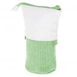 Het duurzame textielmateriaal garandeert een lange levensduur en de rits beschermt de inhoud tegen uitvallen. Het minimalistische groen-witte design zal zowel kinderen als volwassenen bevallen en past perfect bij moderne school- en kantoorbenodigdheden.