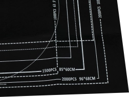 De witte markeringen op de mat tonen exact de afmetingen voor 500–2000 stukjes, zodat je de compositie gemakkelijk kunt plannen.