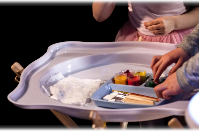 - Spel met water en zand, schilderen met aquarel en gouache, tekenen met uitwasbare stiften