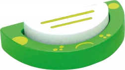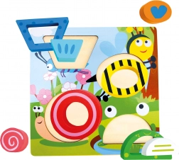 De houten, driedimensionale inlegpuzzel met vrolijke, kleurrijke vijvermotive is ideaal voor kinderen vanaf 3 jaar. De stukjes worden in de juiste volgorde in de stevige basis geplaatst, wat het begrip van sequentie en de ontwikkeling van coördinatievaardigheden ondersteunt. De hoogwaardige afwerking van massief hout en dik multiplex maakt dit speelgoed tot een duurzame partner voor dagelijks spelen.