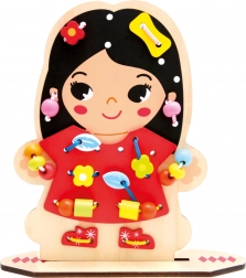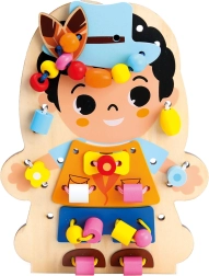 Bied kinderen plezier en leren in één. Het houten Bino-rijgspel met dubbelzijdig bedrukte plaat biedt een breed scala aan activiteiten – rijgen, vastmaken en het combineren van kleurrijke elementen. Dankzij de compacte afmetingen is het ideaal voor thuis en onderweg.