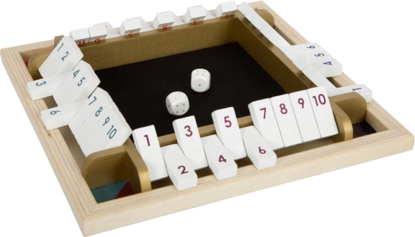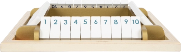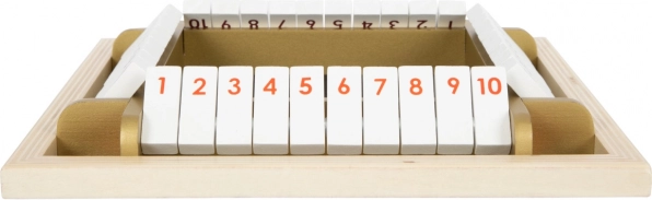 Deze moderne versie van de klassieker SHUT THE BOX met elegante gouden details ondersteunt kinderen bij de ontwikkeling van vroege wiskunde, logica en focus. De kantelbare klepjes met de cijfers 1–10 stimuleren het oefenen van sommen van dobbelsteenworpen en snel beslissen – en dat alles op een leuke manier.