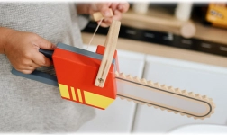 Deze hoogwaardige houten kettingzaag voor kinderen combineert een duurzame afwerking met een veilig design voor dagelijks spel. Opvallende rode en gele accenten met de realistische zaagvorm prikkelen de fantasie en stimuleren zowel rollenspel als de fijne motoriek.