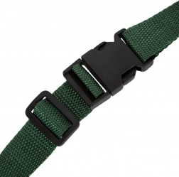 De riem is uitgerust met een gesp voor gemakkelijk vastmaken en een verstelbare lengte, zodat hij past bij verschillende maten.