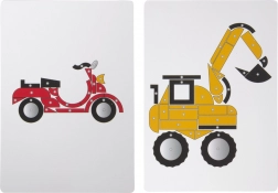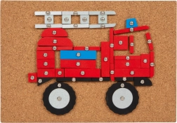 Met dit klassieke hamerspel in moderne kleuren kunnen kinderen afbeeldingen van vervoersmiddelen en bouwmachines maken volgens zes voorbeeldkaarten of naar eigen fantasie. Belangrijkste kenmerken: