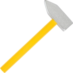 Houten hamertje, punaise-spijkers en kurken ondergrond