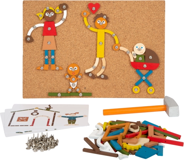 Dit hamerspel van Small Foot biedt geweldig speelplezier gecombineerd met de ontwikkeling van kindercreativiteit en motoriek. Kinderen kunnen verschillende afbeeldingen samenstellen volgens de zes voorbeeldkaarten of naar eigen fantasie. Dankzij moderne kleuren en duurzame materialen is het speelgoed aantrekkelijk, ook voor veeleisende jonge kunstenaars.