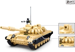 Sluban Model Bricks T‑72B3 2-in-1 is een ideale keuze voor fans van militaire techniek en enthousiaste bouwers. Uit één doos bouw je twee varianten van het model en geniet je van realistische details en functionele elementen. De set bevat innovatieve minifiguren met draaibare en kantelbare lichaamsdelen voor nog betere speelbaarheid.