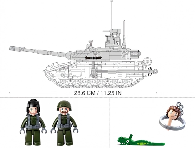 SLUBAN T-90 bouwset: 758 onderdelen, 2 minifiguren, gemiddelde moeilijkheidsgraad, duurzaam ABS-kunststof. Compatibel met LEGO, COBI en Mega Bloks. Geweldige keuze voor kinderen vanaf 6 jaar.