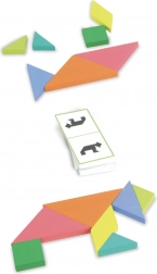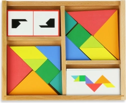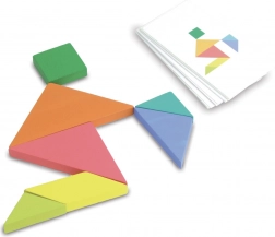 Een leuk en slim spel voor 1–2 spelers: wie als eerste de afbeelding volgens het kaartje legt, wint! Meer dan 100 kaartjes, 4 moeilijkheidsniveaus en 2 complete tangramsets van hoogwaardig hout. Traint uitstekend logisch denken en ruimtelijk inzicht bij kinderen vanaf 5 jaar en volwassenen.
