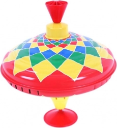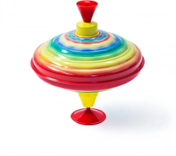 Deze kleurrijke metalen tol is het ideale speelgoed voor kinderen die willen leren en hun motorische vaardigheden willen verbeteren. Druk gewoon op de hendel en de tol begint te draaien en maakt een typisch geluid waar kinderen dol op zijn.